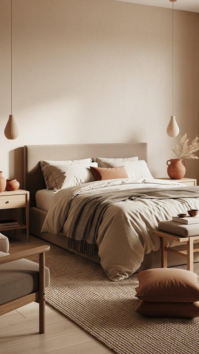 When you build your bedroom around warm neutrals, you create a calming, elegant foundation that makes every accent feel intentional; think honeyed beiges, soft taupes, and muted terracottas that read as sophisticated rather than bland.