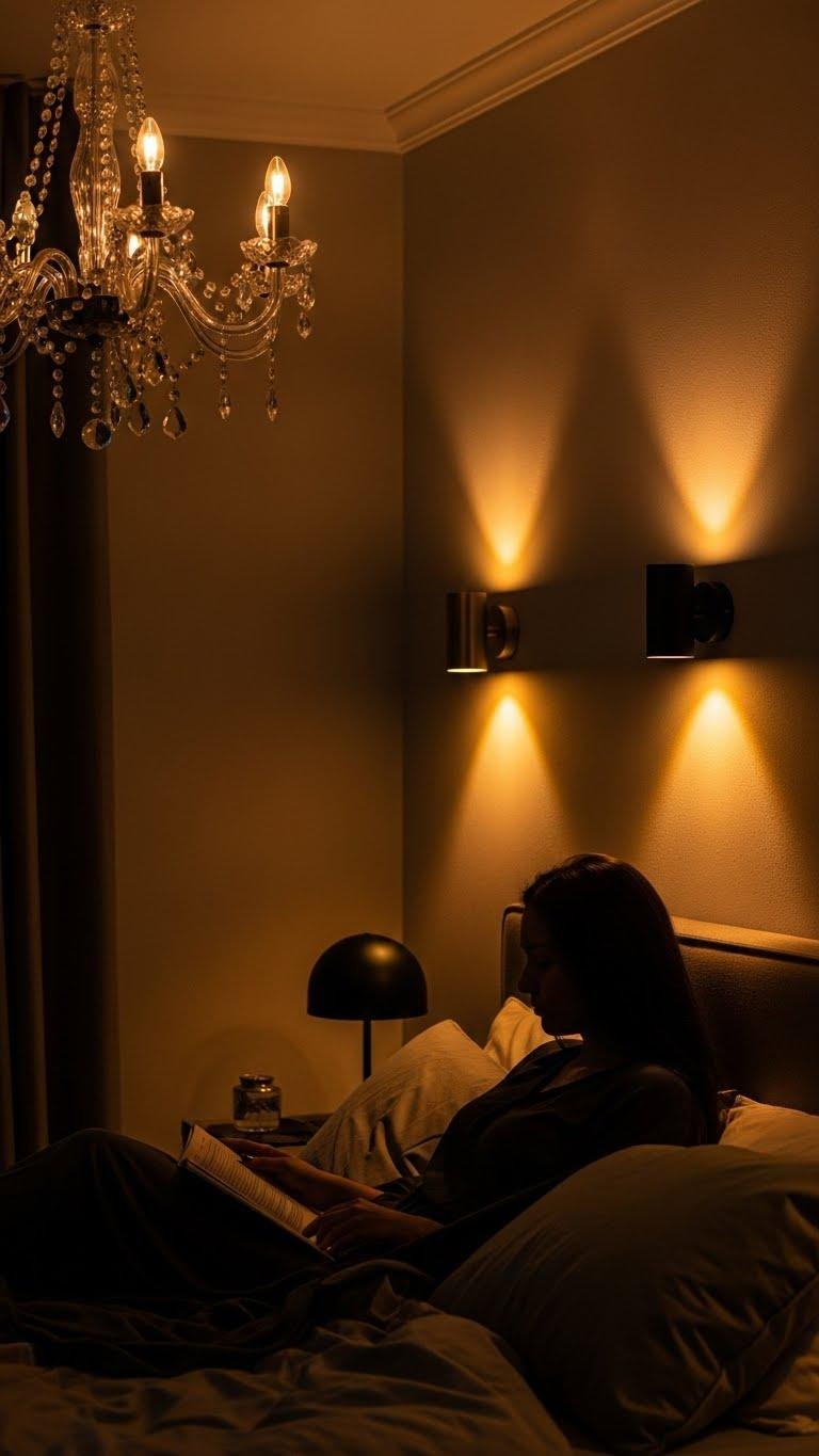 After your chandelier sets the room’s glamorous center, wall lamps step in to layer the light and refine the mood. You’ll choose dimmable sconces that flatter skin tones, frame bedside rituals, and create layered silhouettes across textured walls. Mount them at varying heights, pick finishes that echo your palette, and use warm bulbs so the glow feels intimate yet liberating — controlled, elegant, and effortlessly personal.