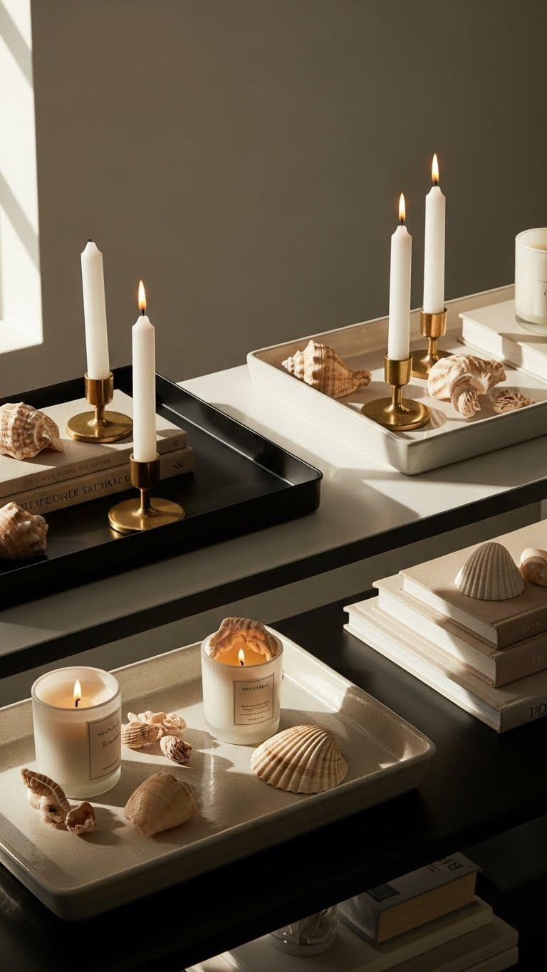 Corral small items with a low-profile tray to keep the shelf feeling curated rather than cluttered; trays give you instant boundaries so each tiny collection reads as intentional. Choose metal trays for sleek contrast or ceramic trays for softer display; you’ll group candles, shells, and small books with clarity. Rotate pieces, keep negative space, and let each tray define purpose without restricting your creative freedom.