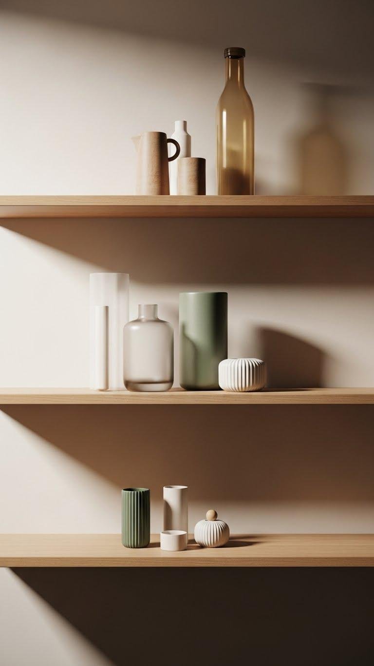 Start by arranging pieces at varying depths so each layer reads clearly from eye level to the front edge of the shelf. You’ll place taller, grounded pieces at the rear, mid-height objects slightly forward, and small accents at the front. Use shadow play and translucent layers to create soft separations and breath between items. Aim for intentional spacing that feels effortless and liberating.