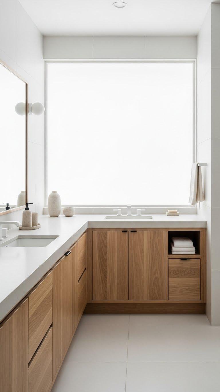 You’ll free the space from sterility, pair wood with pale stone or soft whites, and maintain airy minimalism while feeling grounded and relaxed.