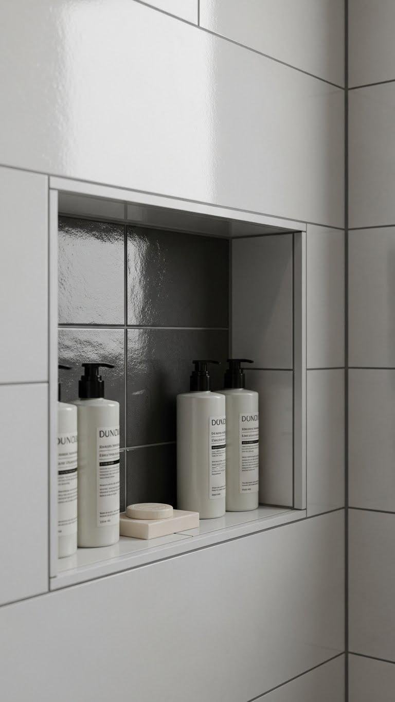 Plan dimensions for daily reach, add hidden waterproofing behind tiles, and choose contrasting tile to make the niche a purposeful design feature that frees visual clutter and feels open.