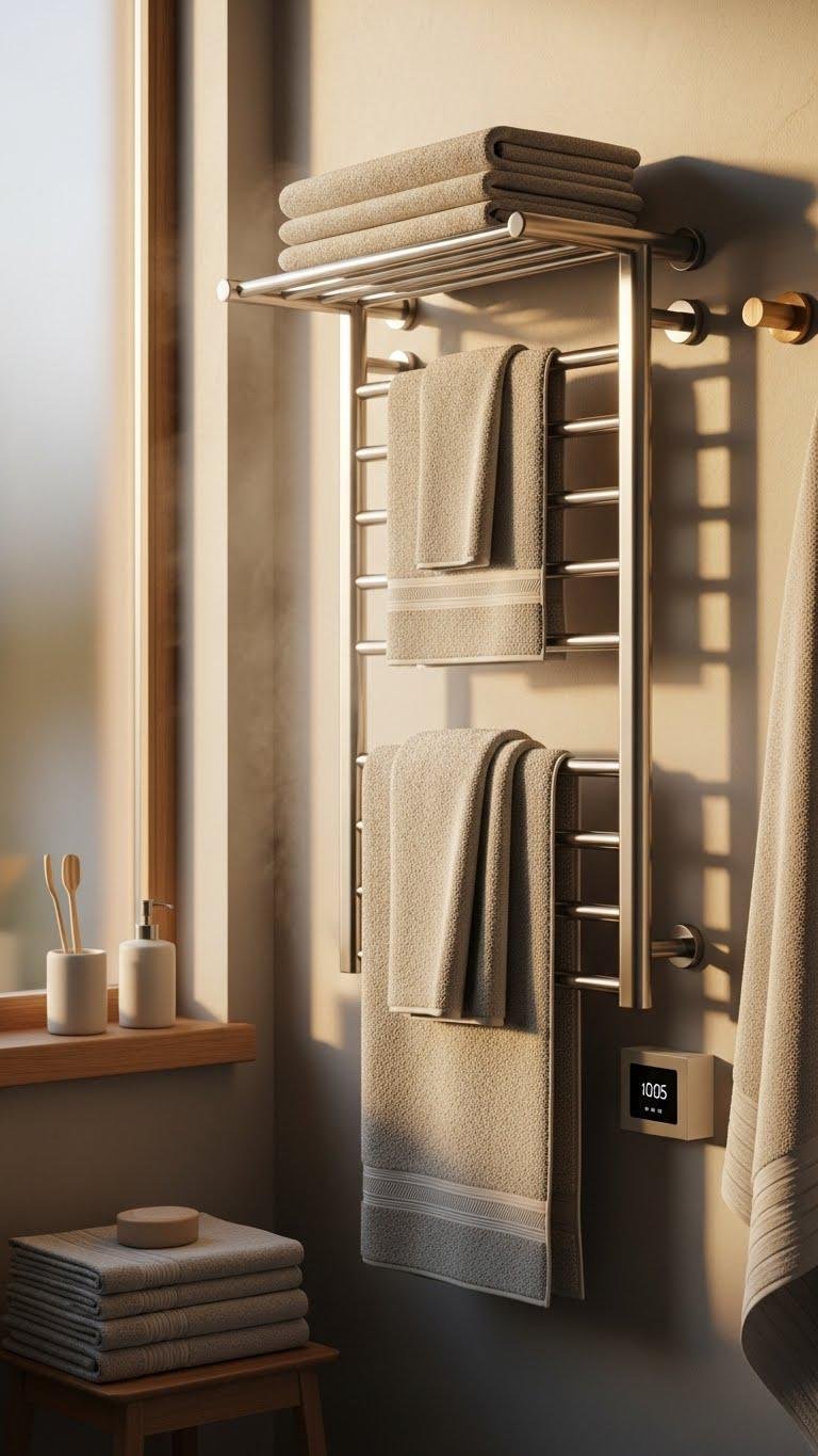 Warm your mornings by installing a heated towel rack that delivers soft, toasty towels the moment you step out of the shower.