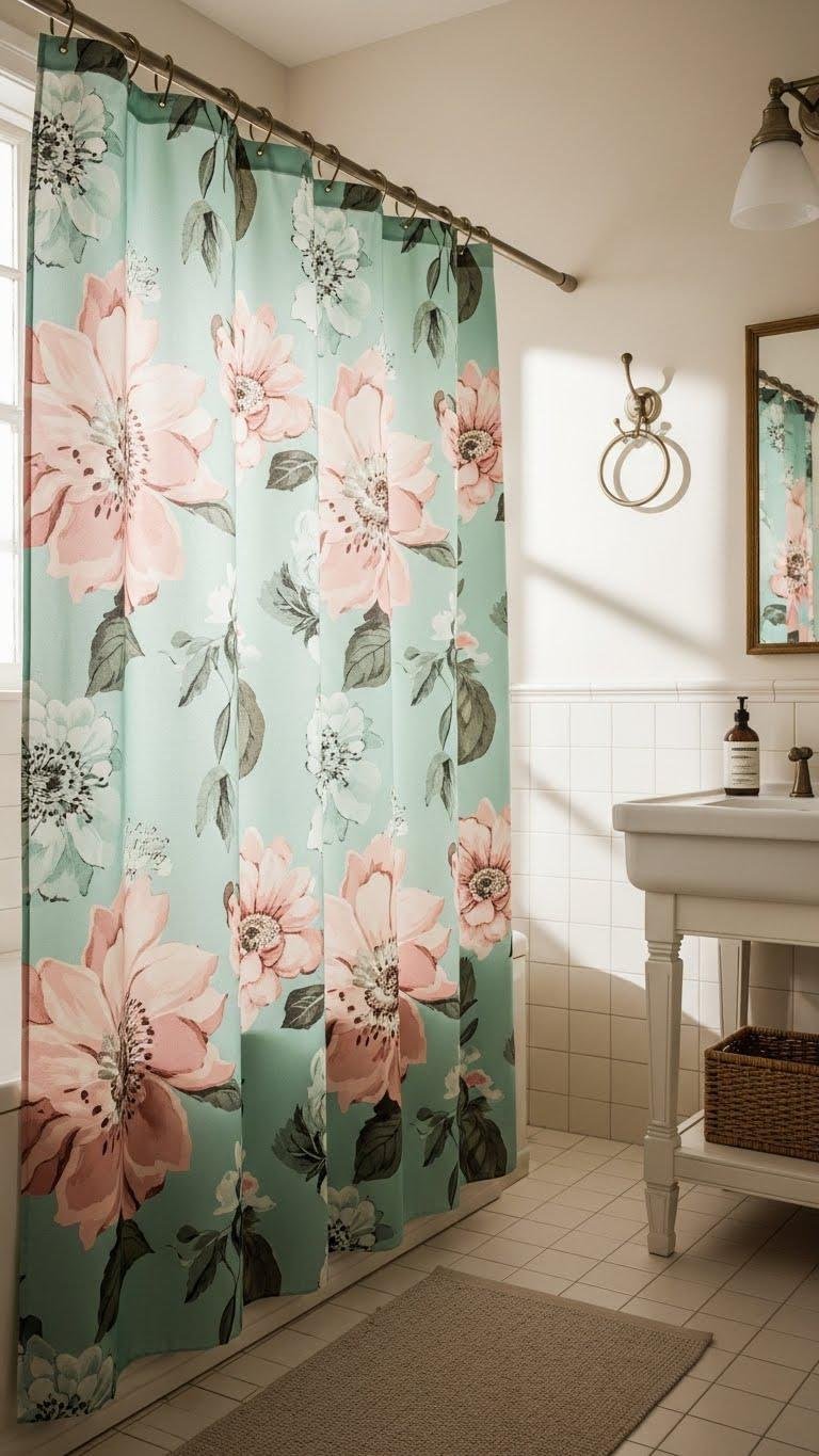 After revitalizing surfaces with mint and blush accents, give your shower curtain the same focused attention—it’s the easiest way to shift mood and make the whole room feel intentional.