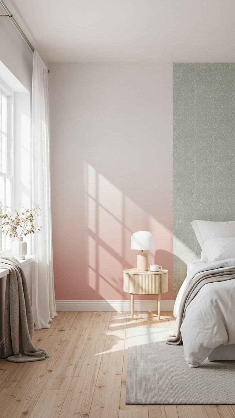 Choose a blush ombre for subtle depth or try sage stenciling to add organic pattern without clutter.