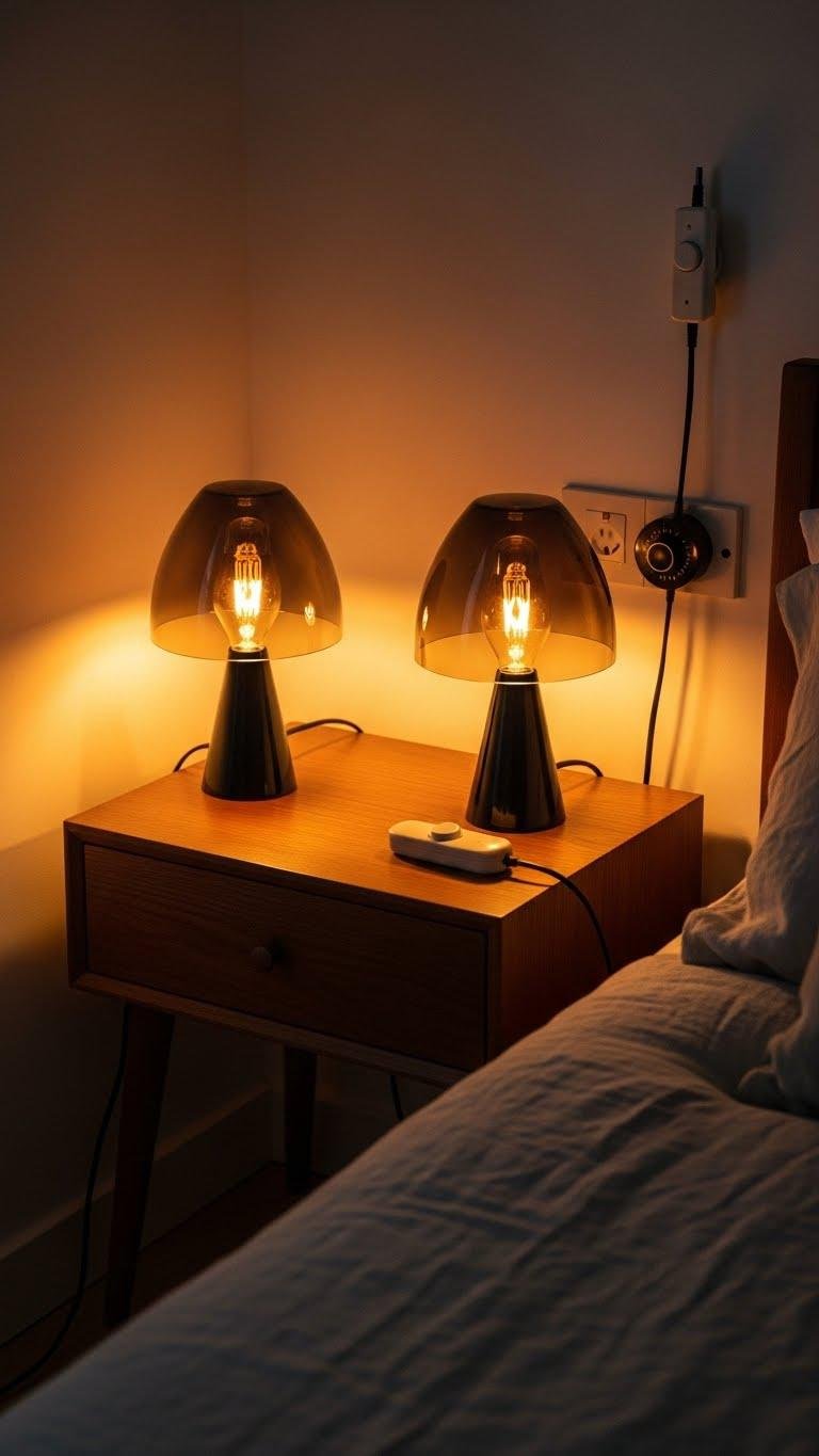 Frequently, a warm, dimmable bedside lamp is the quickest way to give your bedroom that soft, evening glow without overpowering the space. You’ll choose sculptural fixtures, amber bulbs, and soft dim switches to shape mood. Mount lamps for visual balance, keep cords tidy, and add bedside timers so lights fade out as you unwind — simple, liberating, and effortlessly calm.