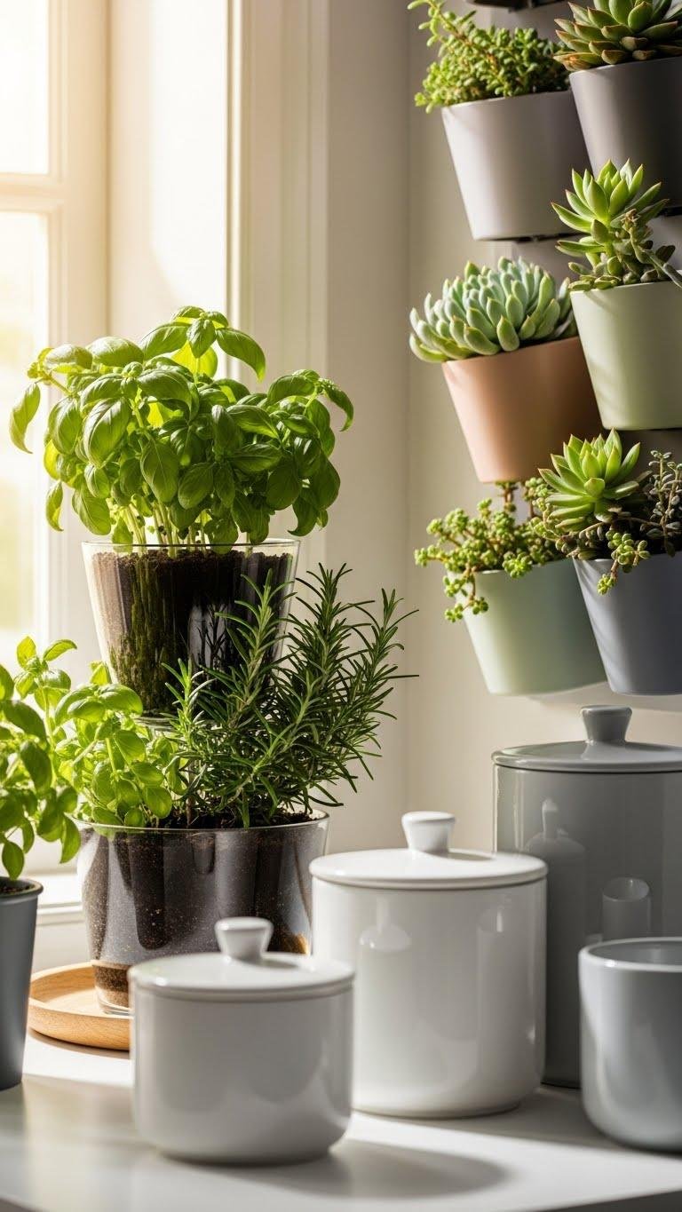 You’ll mix an herb terrarium for scent and kitchen access with vertical succulents to save space.