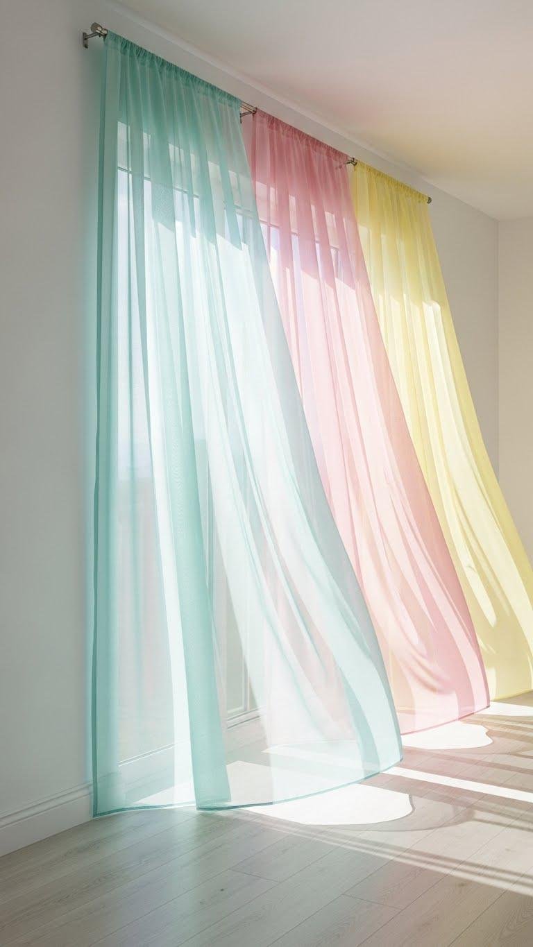 Swap Heavy Drapes for Sheer Pastel Curtains