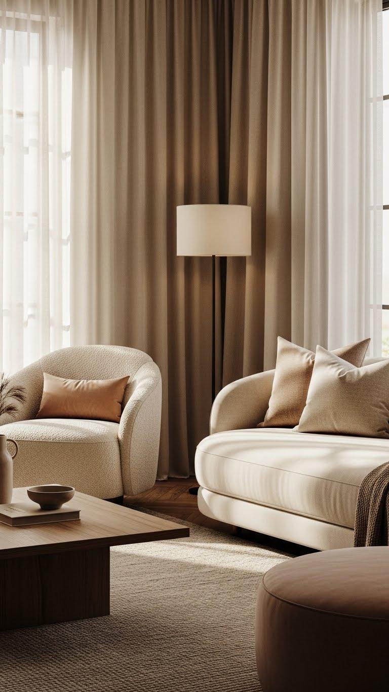 Choose curved armchairs in airy fabrics and pair them with rounded ottomans to encourage relaxed movement. You’ll enjoy a liberated, contemporary vibe that feels intentional, tactile, and effortlessly chic.