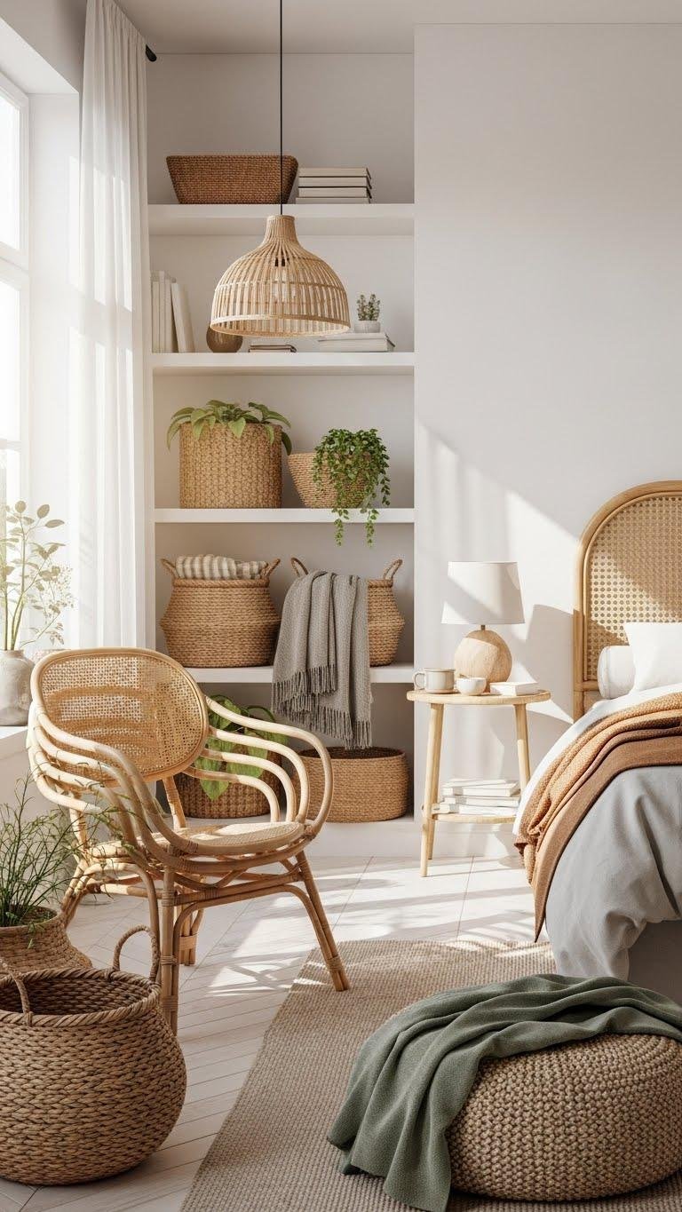 When you add macramé wall art threaded with wooden beads, a room gains tactile interest and a subtle handcrafted focal point that complements light terracotta accents.
