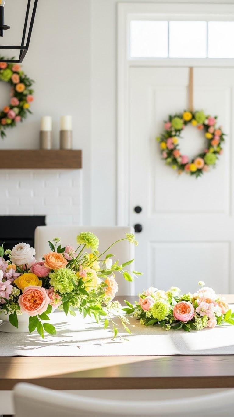 Bring in a fresh floral centerpiece or a simple wreath to instantly update your space for spring — they add color, scent, and a focused sense of season without overhauling your decor.