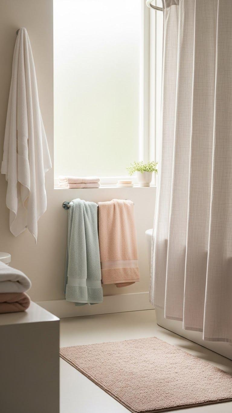 Swap out tired towels for crisp whites or soft pastels to give your bathroom an instant, hotel-like refresh that feels both modern and calm.