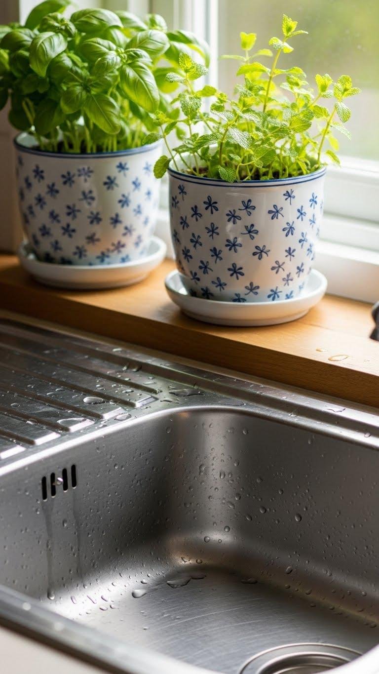 Blue-and-White Planters by the Sink