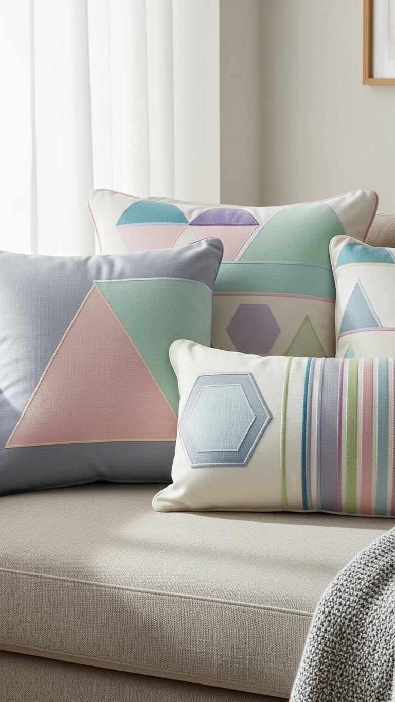 A few geometric pastel cushions can instantly refresh your sofa, bringing clean lines and soft color into the room without overwhelming the space.