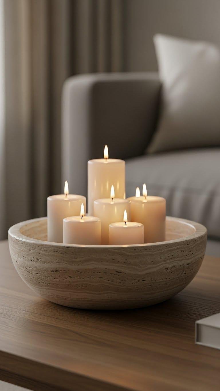 Add a Travertine Bowl With Candles