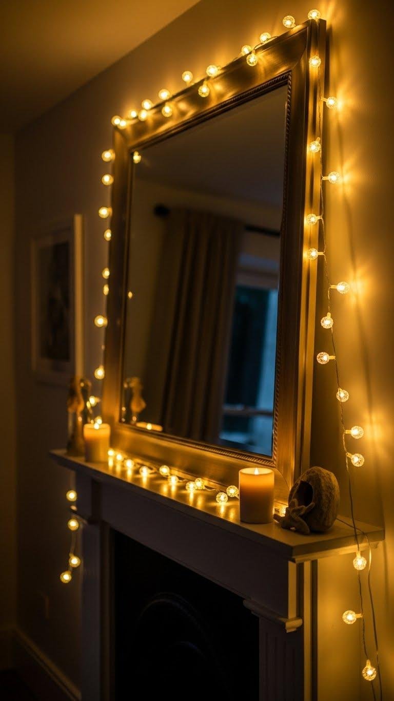 Drape String Lights Behind Mirrors and Mantels