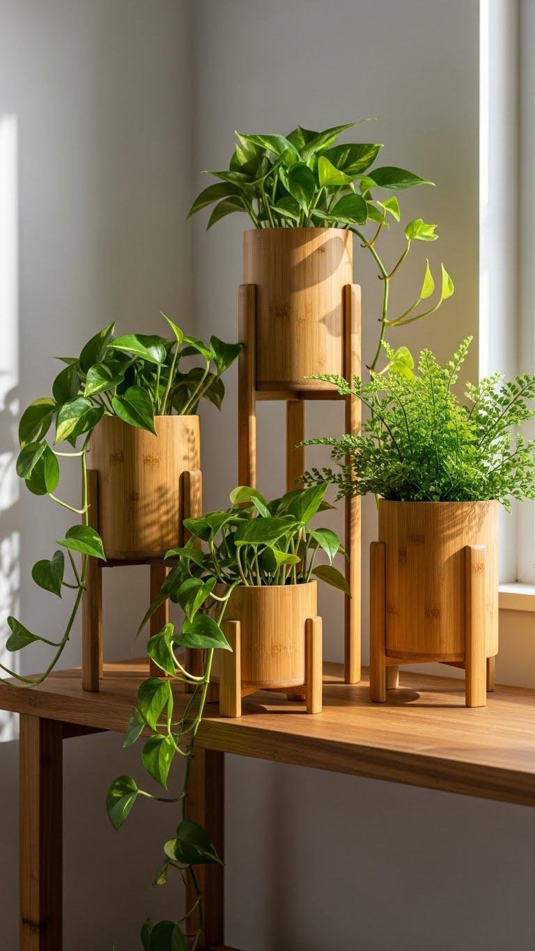 Often you’ll find that a bamboo planter instantly softens a shelf — its warm grain and sculptural silhouette add texture without overpowering the space.