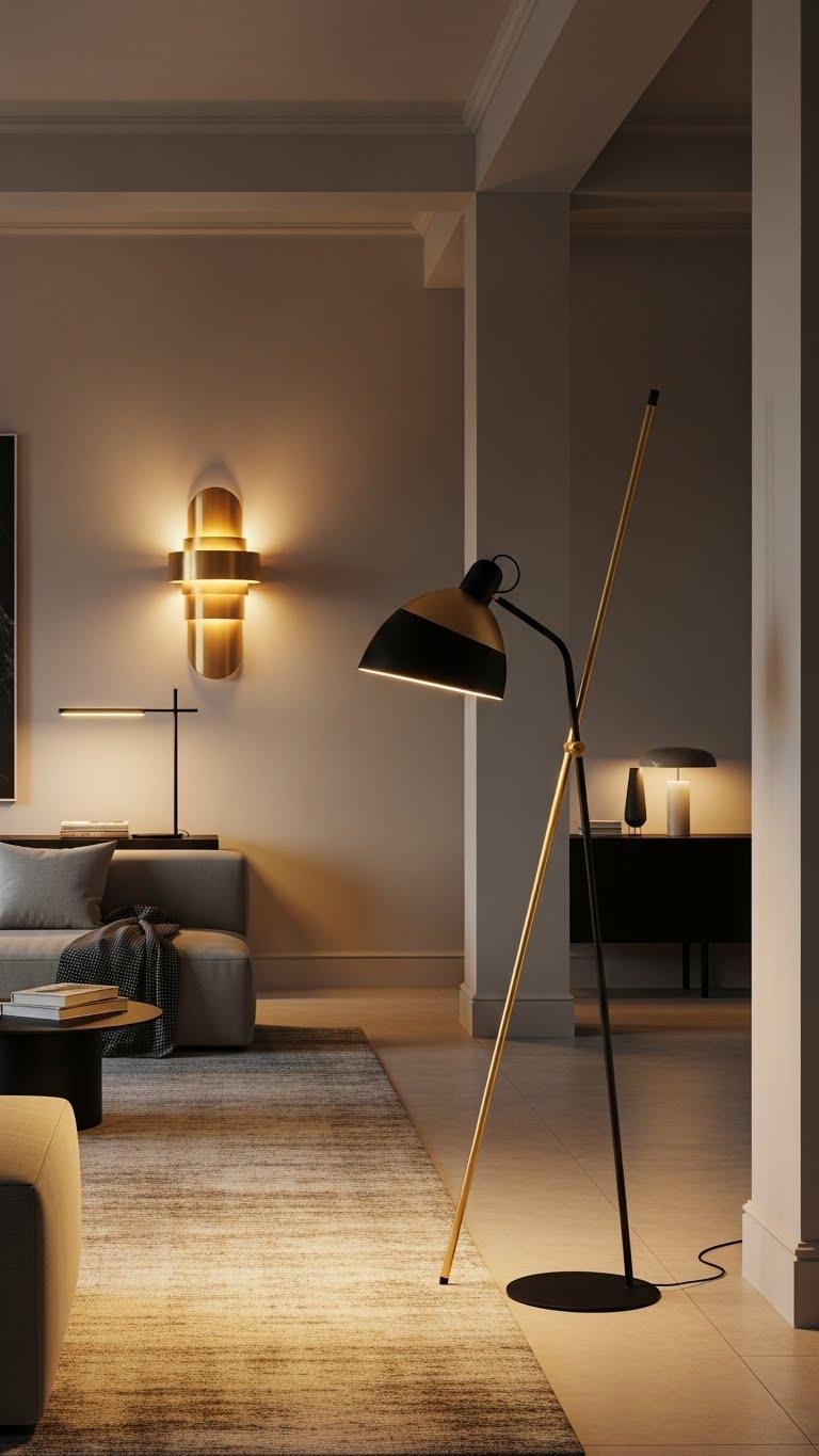 You’ll choose pieces that balance sculptural scale with clean lines, creating an ambient glow without clutter. Position it to define zones, layer with sconces or task lights, and let bold form, brass or matte finishes, and effortless placement deliver a luxe, free-spirited vibe.