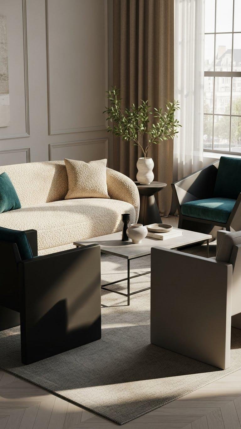 Choose muted neutrals or daring jewel tones, mix curved sofas with angular chairs, and let each piece read like wearable art that liberates your space and spirit.