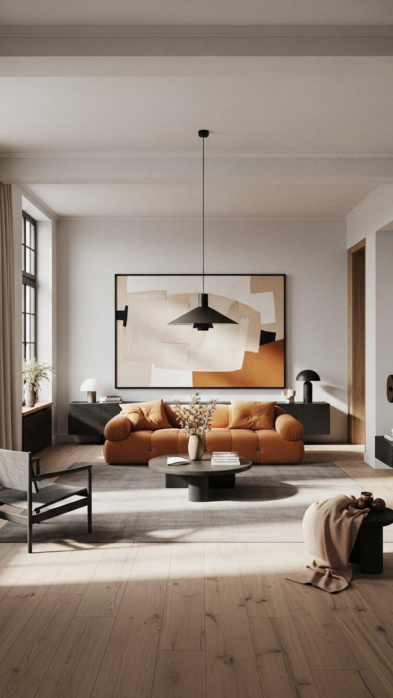 When you anchor a room with a bold accent wall in warm neutrals, you create instant depth and a cozy, sophisticated backdrop that highlights furnishings without overpowering them.