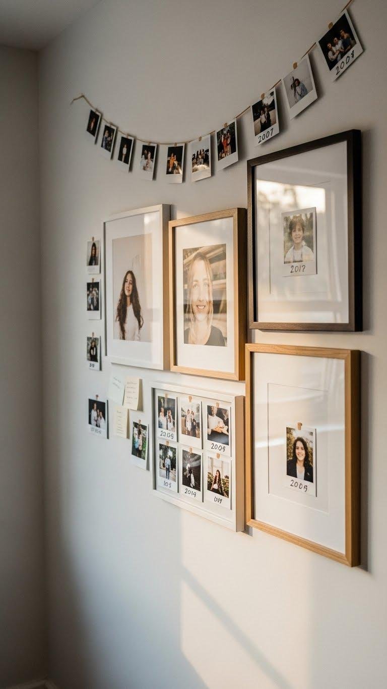 Turn a blank wall into a sentimental focal point by arranging your favorite photos into a cohesive memory display that feels modern and personal. Hang a polaroid garland for casual charm, mix framed shots with cropped prints, and leave negative space to breathe. Rotate images from heirloom albums, label dates or short notes, and let the wall celebrate shared stories without clutter or kitsch.