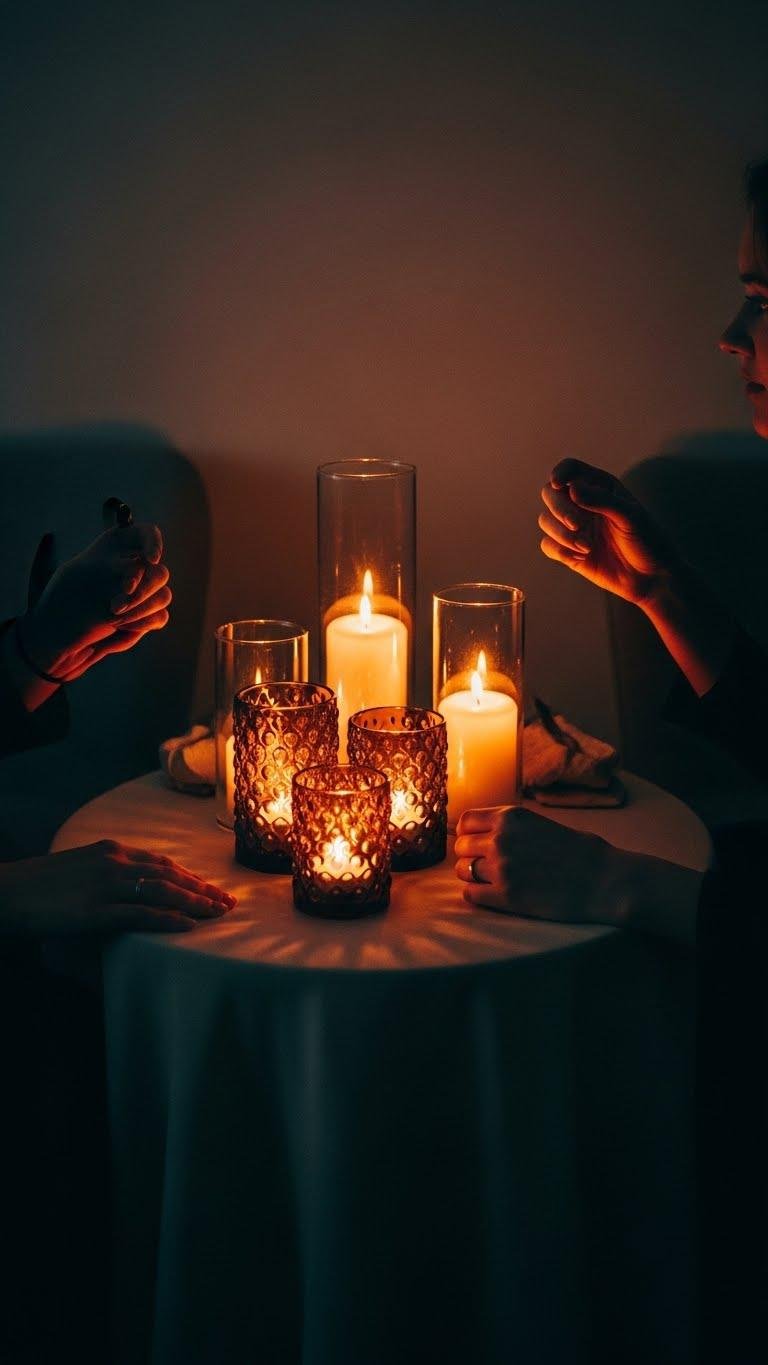 Dim the overheads and let a cluster of lanterns take over the mood — their flickering amber will carve intimate pockets of light that feel both timeless and on-trend. You’ll arrange varied heights, lean into a soft glow, and invite close conversation. Candles inside glass whisper warmth, letting you trade intimate speech and stolen looks while savoring freedom, style, and a night uncluttered by bright distractions.