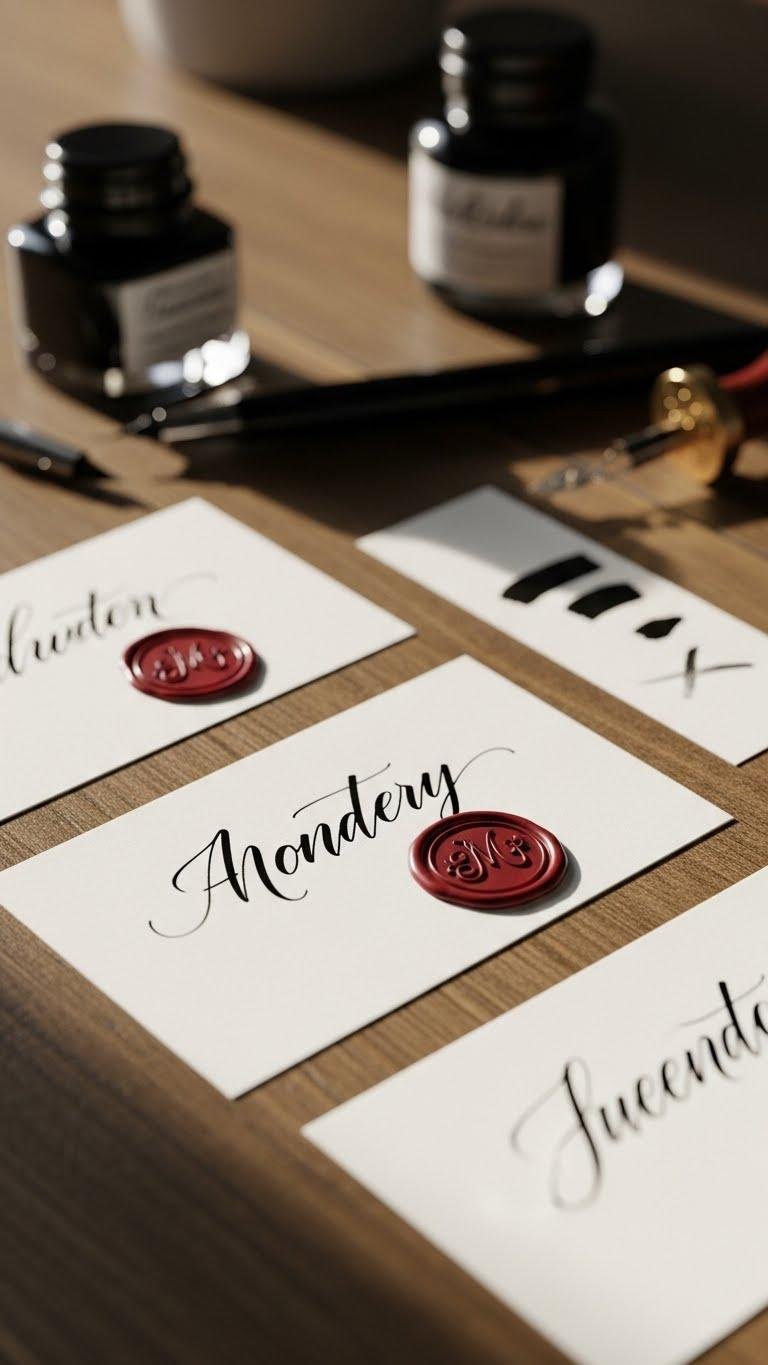 Why not let the first touch be a personal one? You’ll craft custom handwritten name cards that whisper intent — minimalist paper, inked names from calligraphy practice, and a tiny wax sealed monogram for contrast. You’ll mix modern ease with artisanal flair, letting guests feel seen without fuss. Quick, stylish, and free-spirited, these cards set a warm, intimate tone at your table.