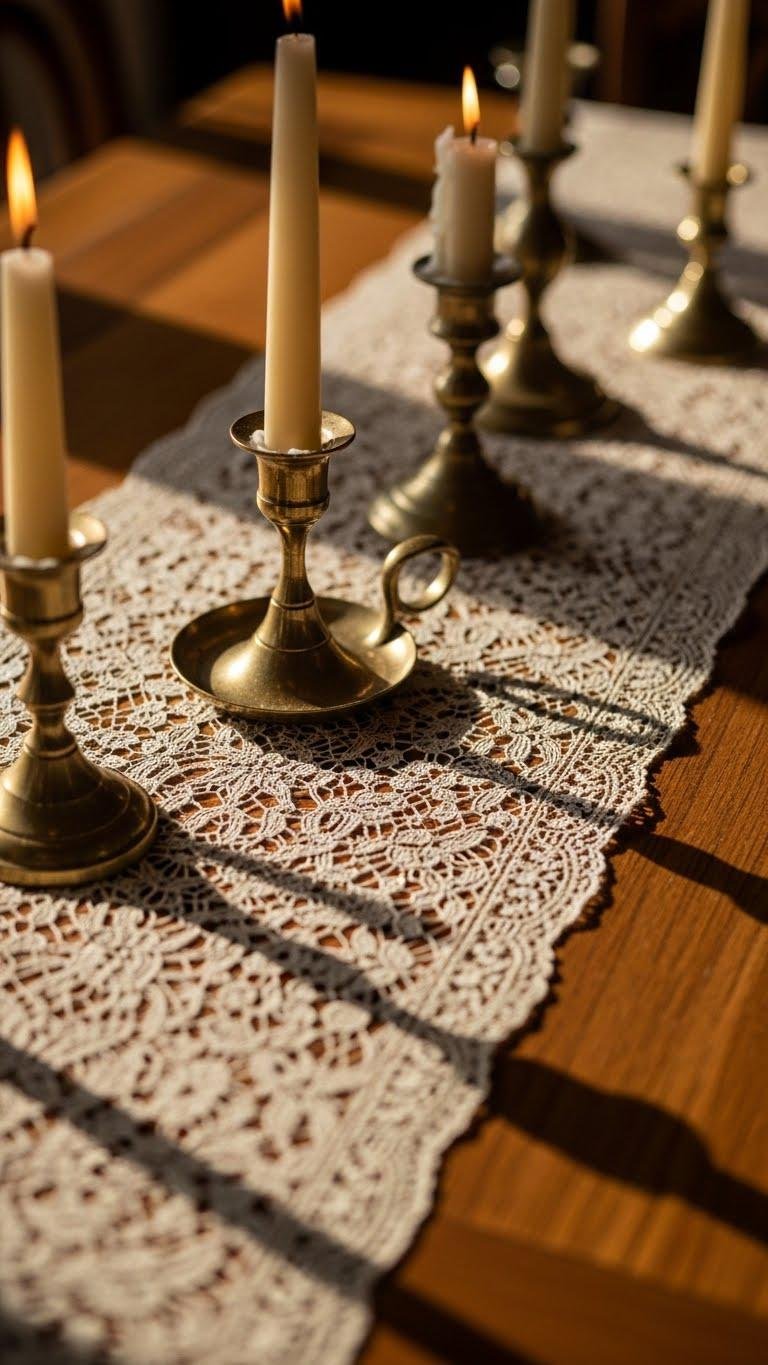 Lace Runner and Candlelight Ambiance