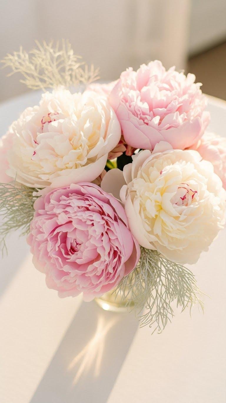 When peonies burst into bloom, let their billowy heads steal the show—soft blushes and creamy whites layered like couture fabric create a dreamy, romantic centerpiece that feels both curated and carefree.