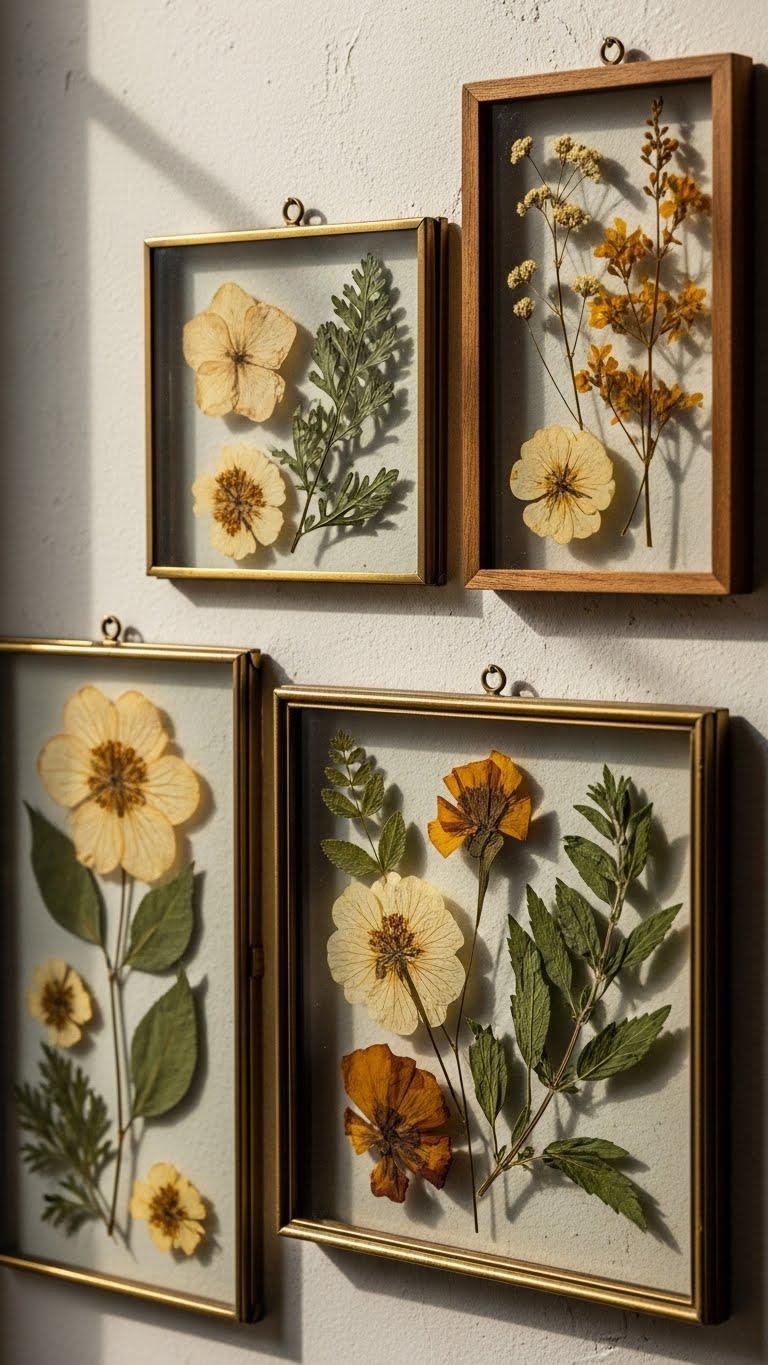 When you press flowers and herbs into shadow boxes, you turn fleeting blooms into museum-ready keepsakes that add delicate texture and natural scent memory to any room. You’ll curate sun dried petals, arrange herbs with intentional negative space, and use heirloom pressing techniques for lasting detail. These frames free your walls, evoke wanderlust, and honor simplicity with confident, tactile elegance.