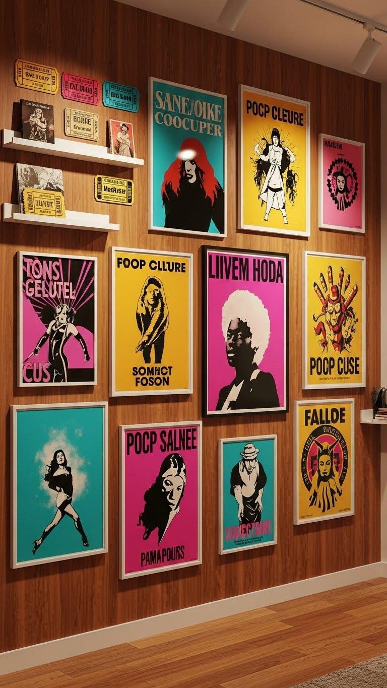 A curated wall of pop culture and retro posters lets you tell a story at a glance — bold colors, vintage typography, and iconic imagery turn an ordinary surface into a statement-making gallery. You’ll mix vinyl posters with limited prints, celebrate cult classics and retro fandom, and arrange pieces to flow.