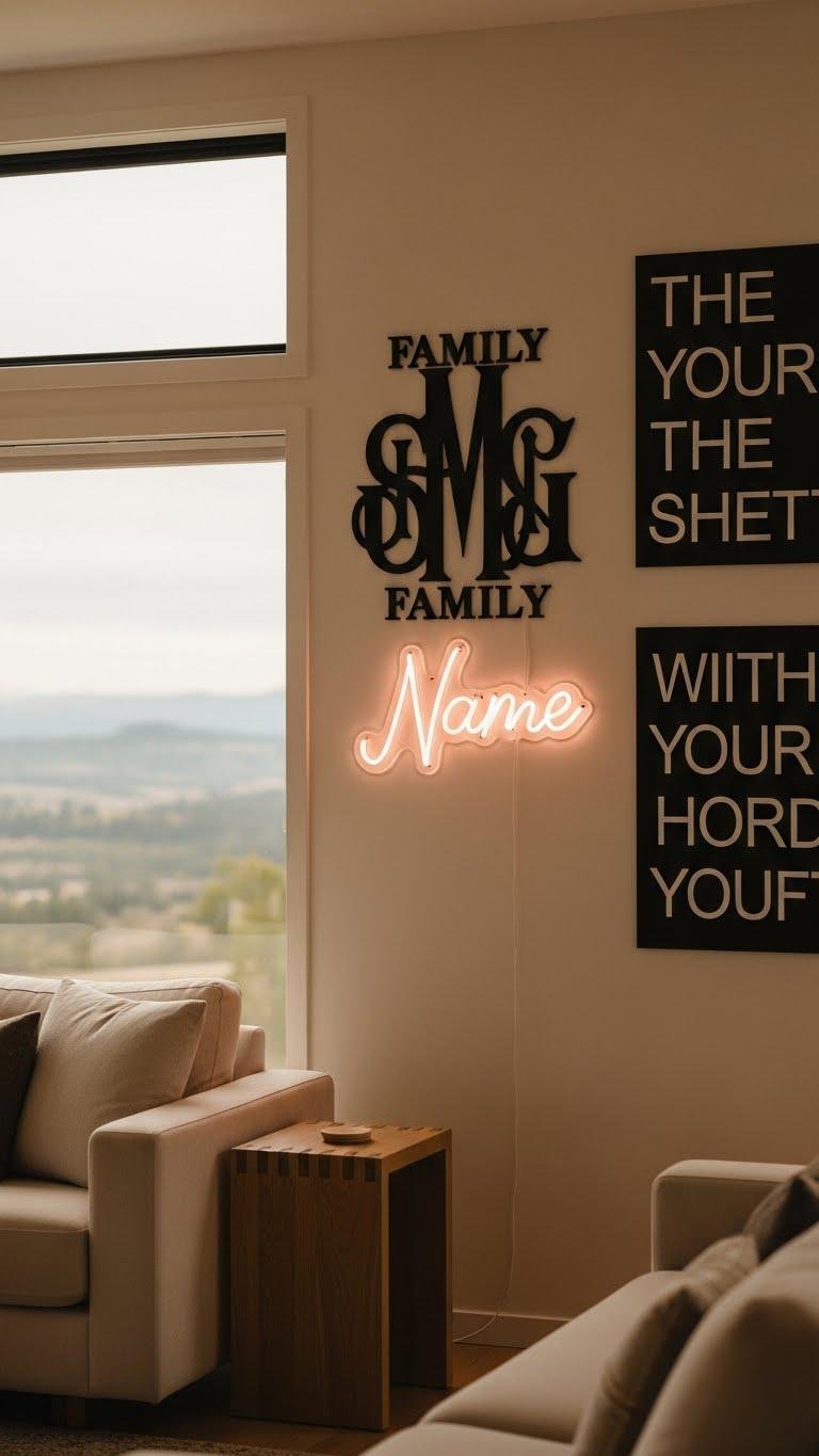 You’ll choose custom monogramming or a sleek family monogram, install bold quote typography, or hang a name neon for instant character.