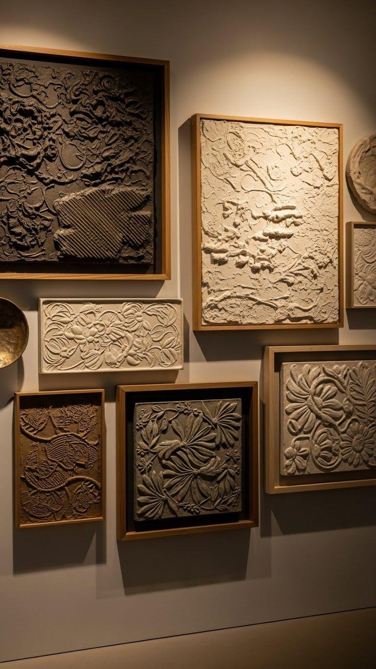 Anchor your room with wall sculptures and relief panels that bring dimension, texture, and sculptural drama to flat surfaces. You’ll choose bold textural reliefs or refined ceramic bas reliefs to create focal points that free your space from flatness. Mix metallics, woods, or clay pieces, mount at eye level, and let tactile art redefine mood, movement, and personal expression without clutter.