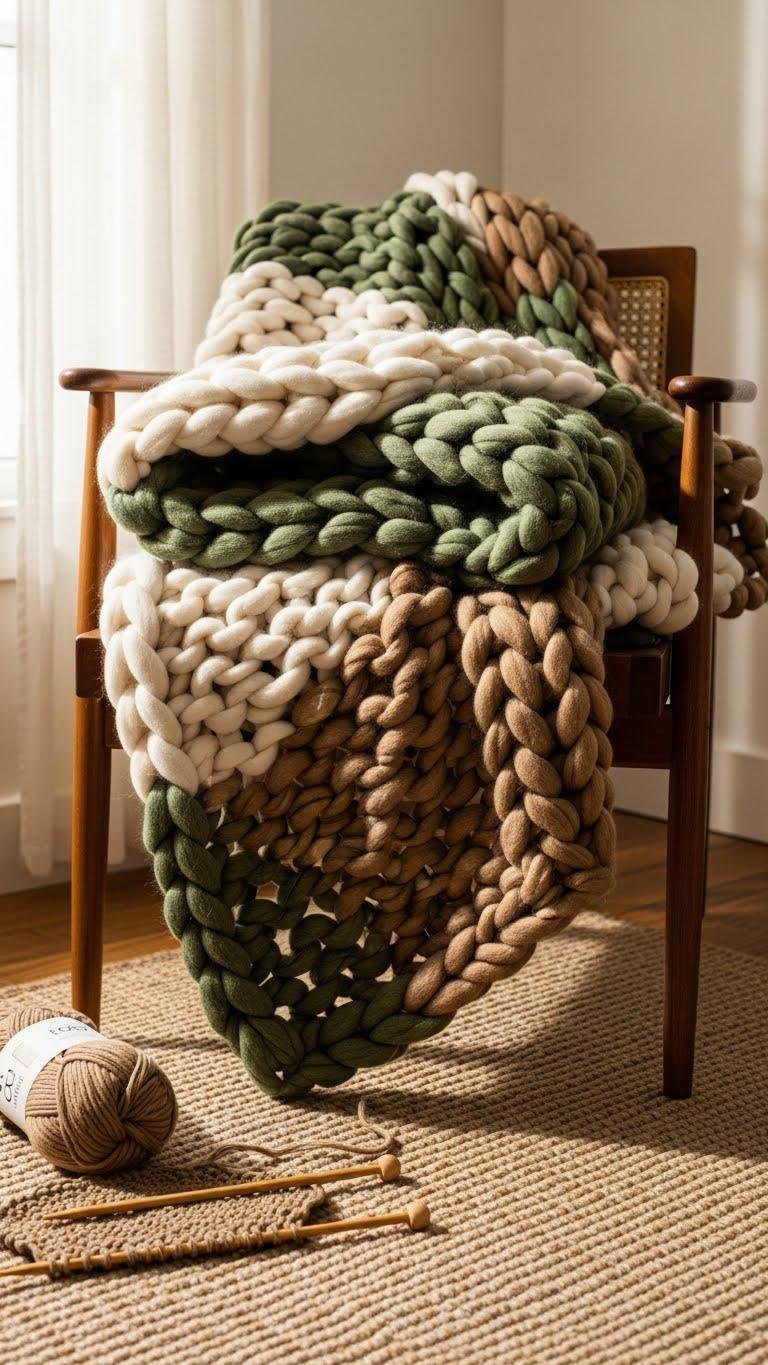 Often, you’ll reach for a chunky knit blanket when you want instant warmth and texture; its oversized stitches invite touch and make a bold visual statement. You’ll learn techniques at a hand knit workshop, choosing eco friendly yarns that feel earthy and durable. Drape one over a chair, let it anchor a room, and claim comfort without fuss—practical, free, and tactile.