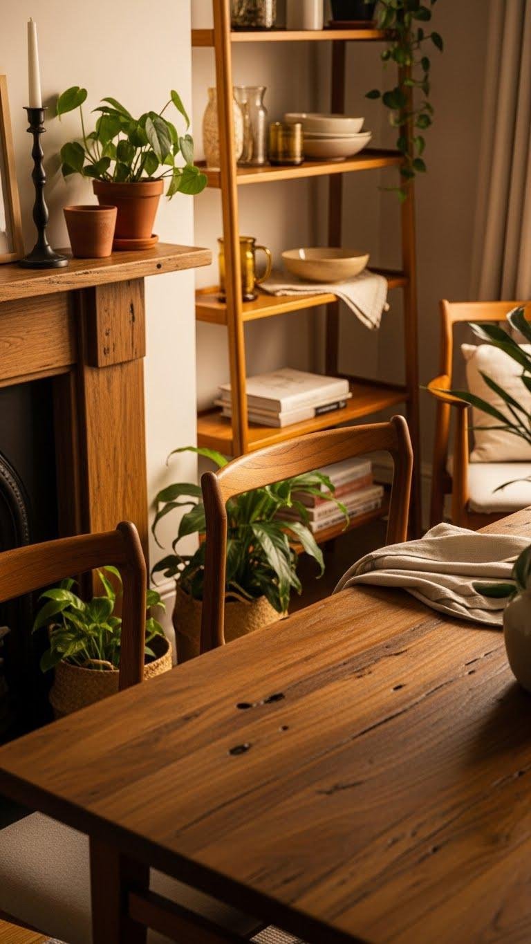 Bring in warm wood tones to anchor a room and make other elements feel intentional. Use reclaimed timber for surfaces that tell stories and age gracefully; run your hand across grainy mantels and tables.