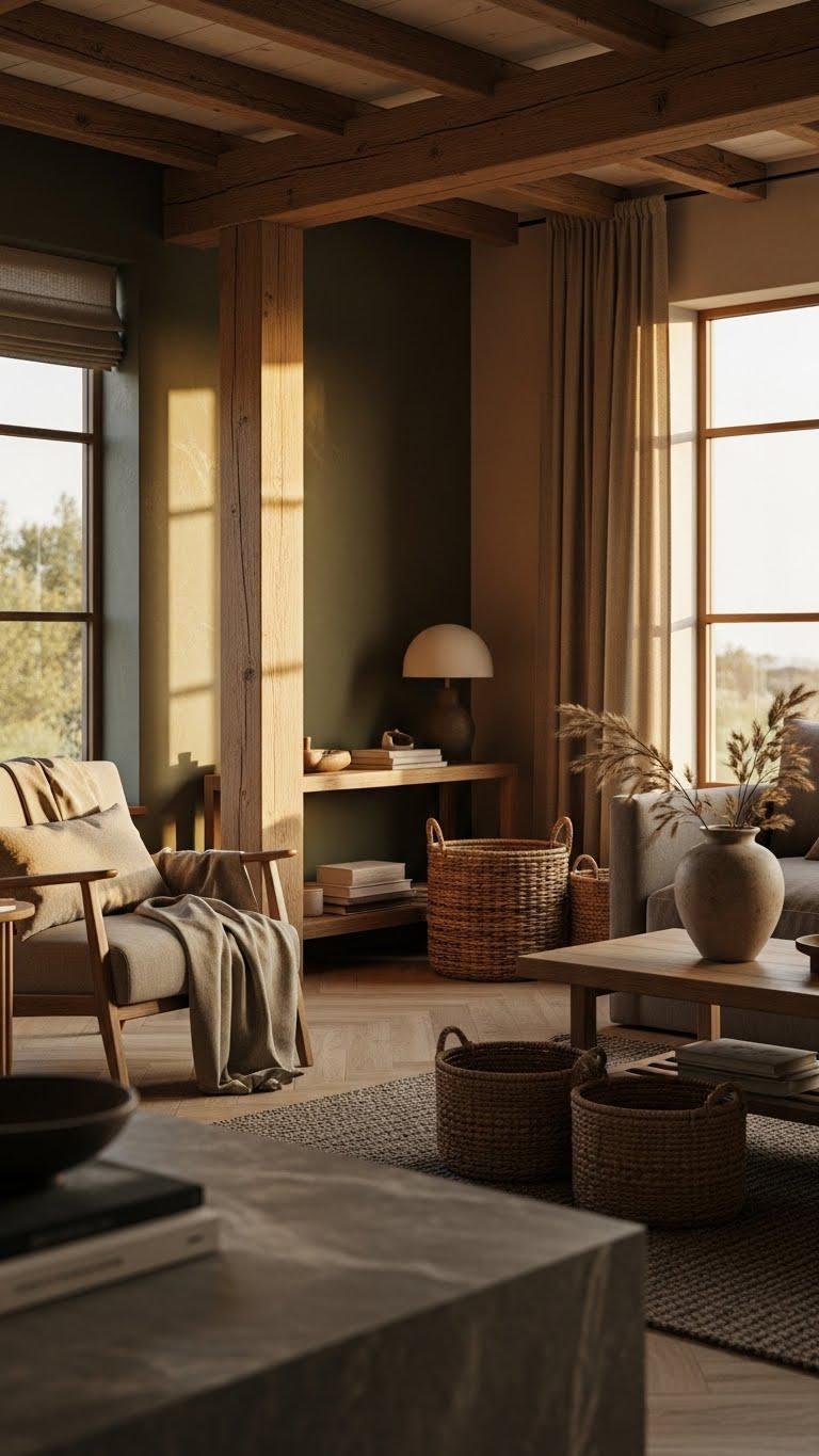 Choose hand hewn surfaces, warm woods, and matte stone to invite touch. Drape raw linen over seating, add woven baskets, and favor forged metal over slick chrome. You’ll create a lived-in shelter that feels free, tactile, and intentional — a home that invites lingering without artifice.