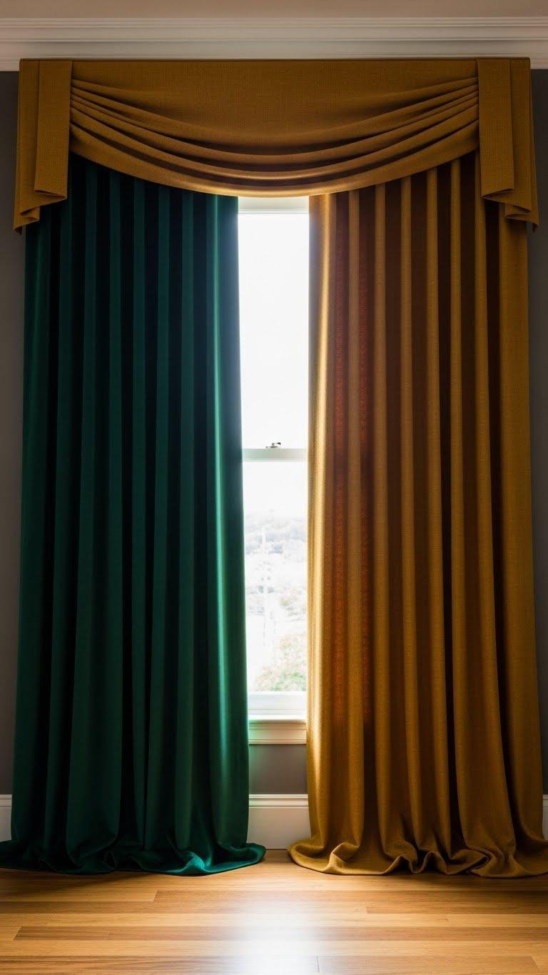 You’ll choose bold fabric, textured linen or velvet, and a tailored draped pelmet to anchor sightlines.