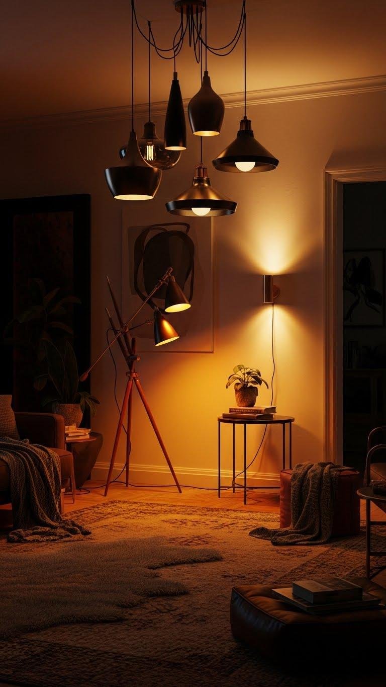 You’ll combine mixed pendants for overhead drama, floor lamps for sculptural warmth, and table sconces for focused glow. Layered lighting gives you control, freedom to shift brightness, and a lived-in, intentional feeling.