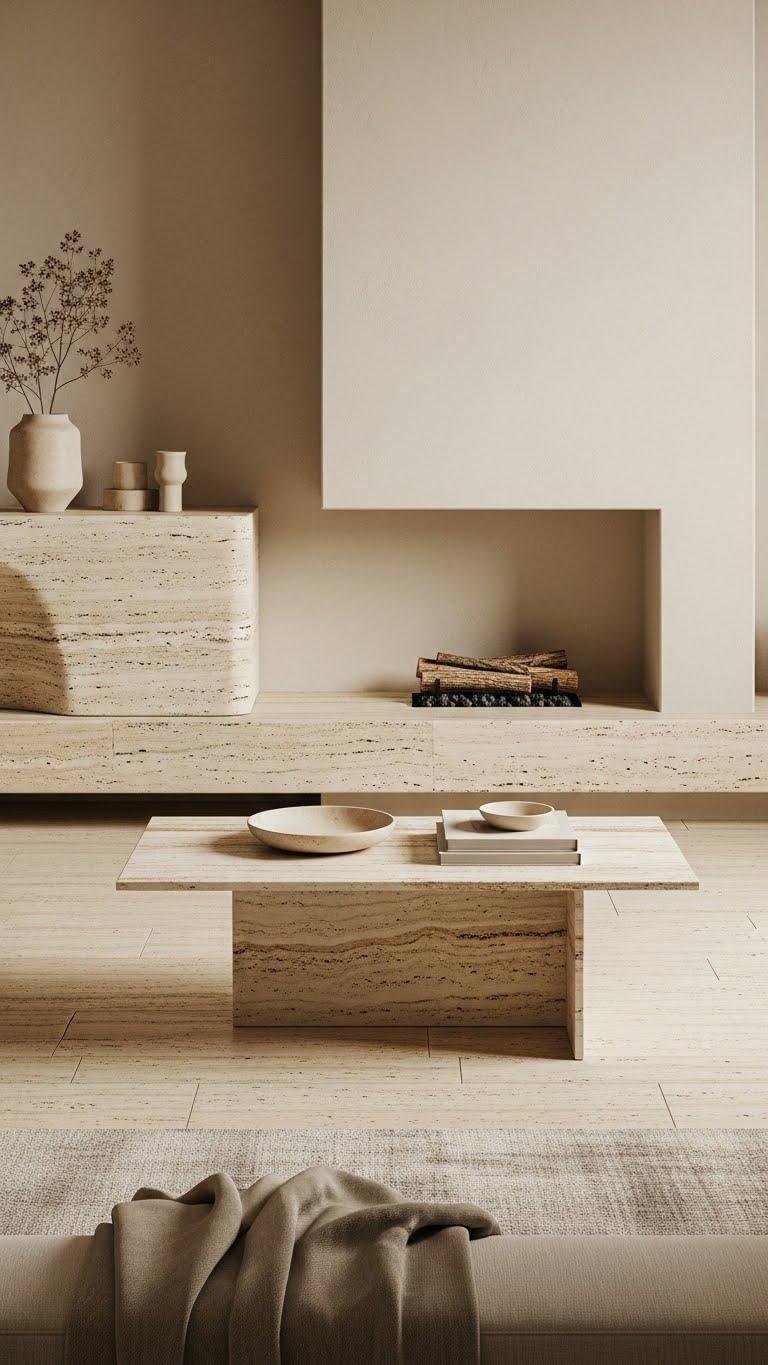 Introduce travertine or marble to anchor your warm minimalist scheme with quiet luxury that reads natural, not flashy.