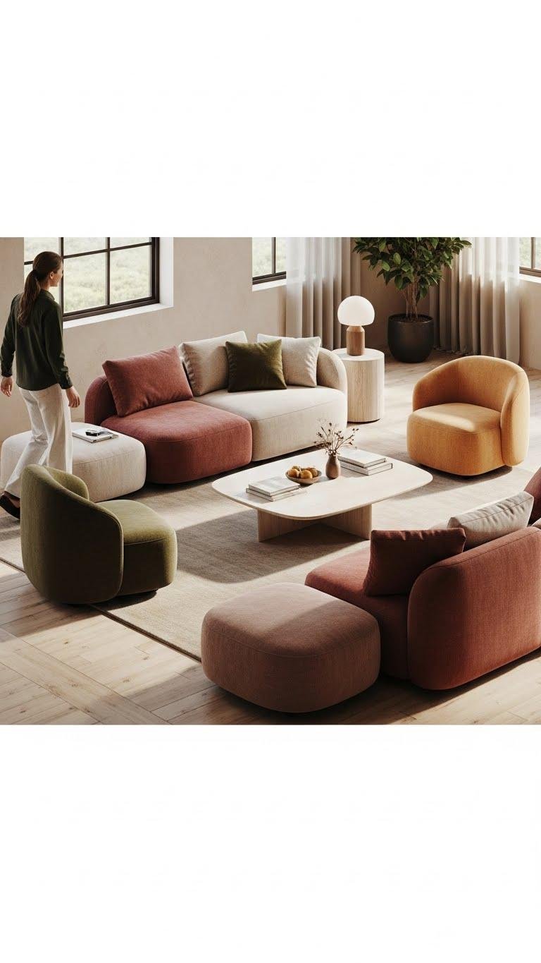 Embrace curves to soften a room’s geometry and invite lingering conversations—curved sofas and rounded furniture gently reshape sightlines, create intimate seating arrangements, and make movement feel effortless.