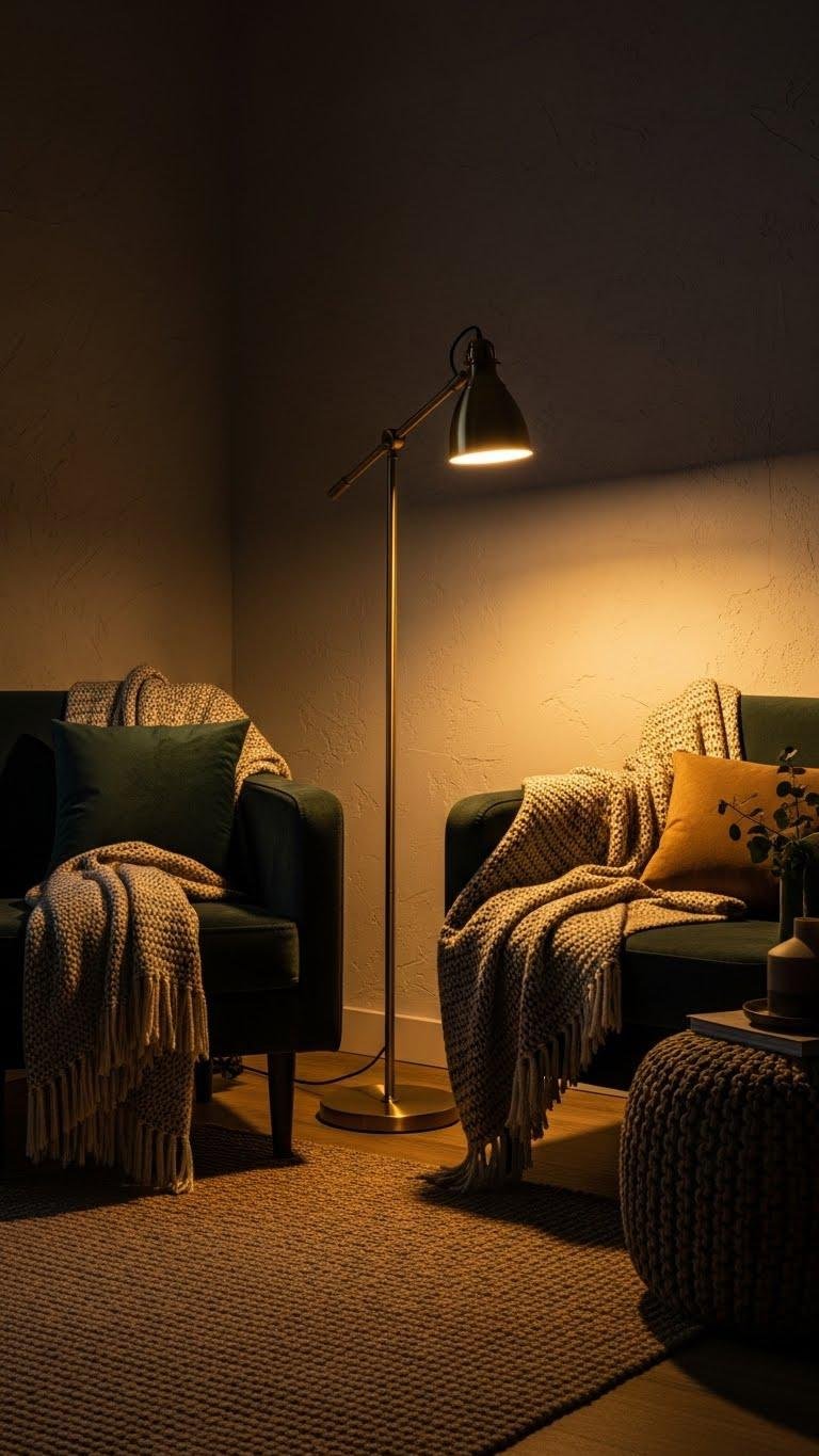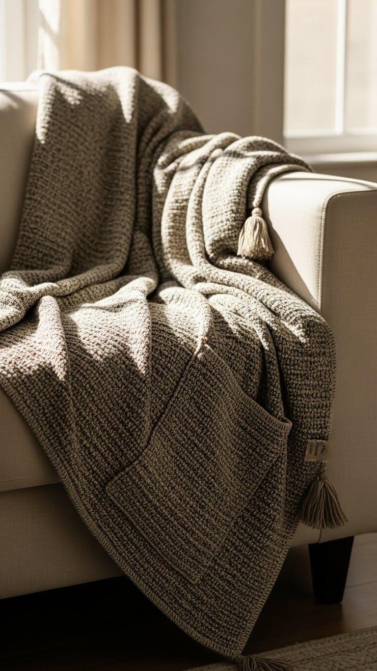 Drape a weighted blanket over a sofa corner to instantly boost both comfort and visual weight in your living room; the tactile heft signals warmth and invites lingering.