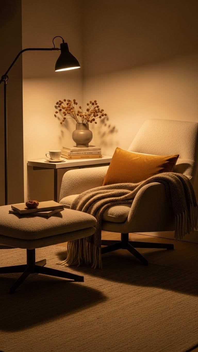 You’ll create a deliberate, calm nook that feels secure, inviting, and effortlessly stylish—perfect for slow mornings or evening unwinding.